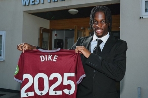 西汉姆社媒晒出蒂克签约的照片,确认与这位U18梯队前锋签下首份职业合同,并对他表示祝贺。